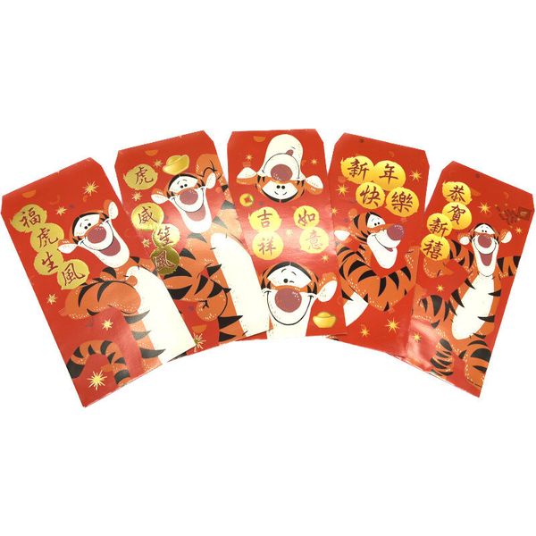迪士尼 DISNEY WINNIE THE POOH 跳跳虎 正版 2023 兔年 賀年 紅色 利是封 5個裝 紅封包 紅包 壓歲錢 新年 【平行進口】