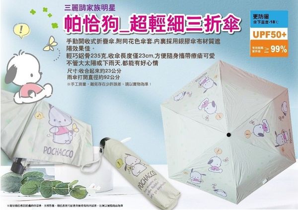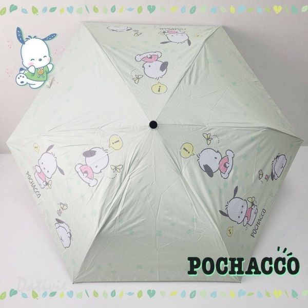 SANRIO-POCHACCO PC狗 正版 銀膠布 防UV 雨傘 輕巧 縮骨遮 短遮 摺疊傘 戶外 便攜 雨具 53CM 2024年款 帕恰狗【平行進口】