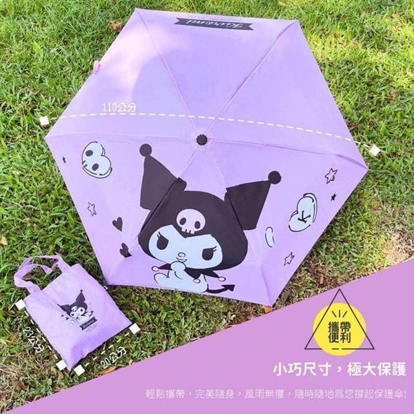 SANRIO-KUROMI 正版 雨傘 縮骨遮 短遮 連 收納袋 摺疊傘 戶外 便攜 雨具 2023年款 酷洛米 庫洛米 可羅米 (偷心小惡魔) 【平行進口】