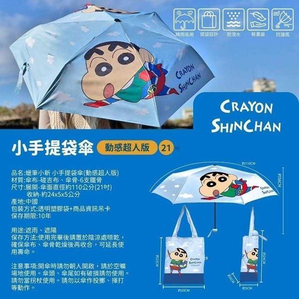 蠟筆小新- 正版 黑膠布 防UV 雨傘 縮骨遮 短遮 連 收納袋 摺疊傘 戶外 便攜 雨具 2024年款 野原新之助 (動感超人) 【平行進口】