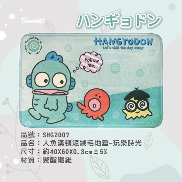 SANRIO-HANGYODON 水怪 正版 家居 方形 吸水 毛絨 防滑 地毯 地氈 地墊 腳踏墊 浴室 玄關 門口 2024年款 海怪 人魚漢頓 (玩樂時光)【平行進口】