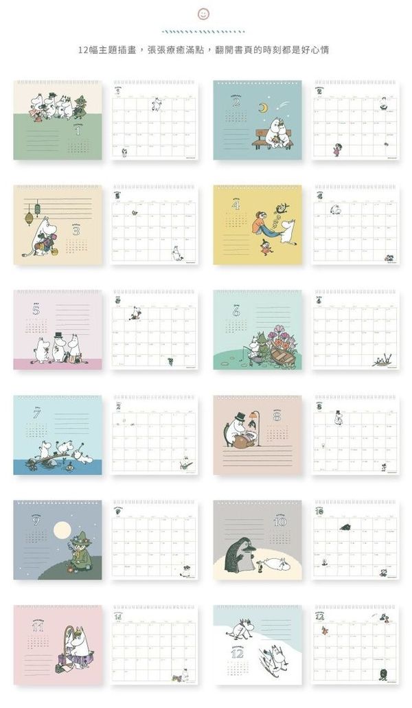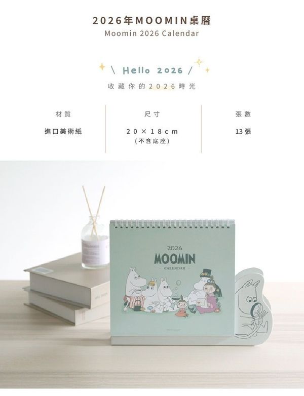 NORNS-MOOMIN 姆明家族 正版 2026 桌上 線圈 座檯 月曆 桌曆 枱曆 家居 台灣假期 姆明一族【平行進口】