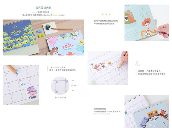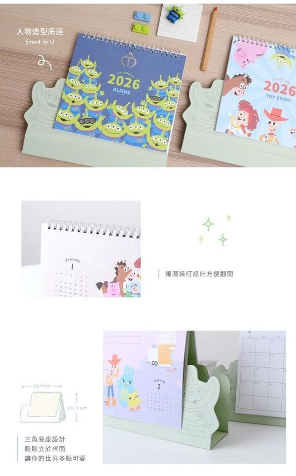 NORNS-迪士尼 DISNEY 反斗奇兵 TOY STORY 正版 2026 桌上 線圈 座檯 月曆 桌曆 枱曆 家居 台灣假期 PIXAR 玩具總動員【平行進口】
