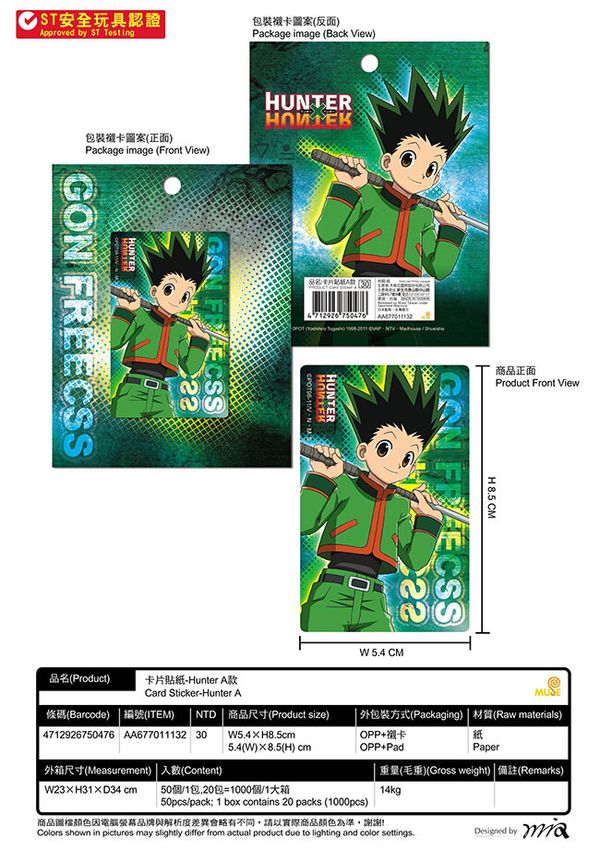 HUNTER X HUNTER 全職獵人 正版 八達通 住戶證 會員證 卡貼 咭貼 裝飾 貼紙 木棉花 小剛 小傑 (A款) 【平行進口】