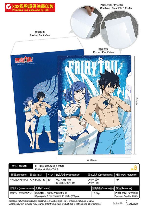 魔導少年 FAIRYTAIL 正版 文具 兩用 A4 FILE 文件夾 資料夾 FOLDERS 公文袋 文件袋 LULU夾 妖精的尾巴 妖尾 木棉花 格雷X茱比亞 (B款) 【平行進口】