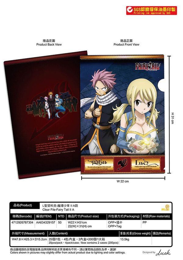 魔導少年 Ⅱ FAIRYTAIL Ⅱ 正版 文具 A4 FILE 資料夾 FOLDER 文件夾 妖精的尾巴 妖尾 木棉花 納茲X露西 (A款) 【平行進口】