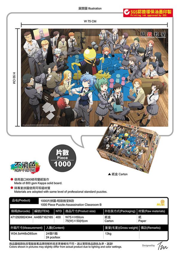 絕版 暗殺教室 正版 砌圖 PUZZLE 拼圖 遊戲 1000塊 木棉花 極速老師 三年E班 (B款) 【平行進口】