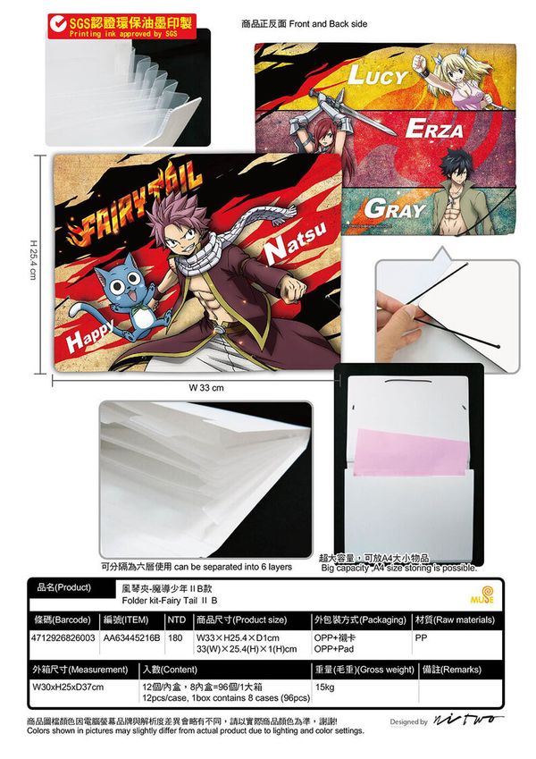 魔導少年 Ⅱ FAIRYTAIL Ⅱ 正版 文具 橫式 風琴夾 文件袋 A4 FILE 文件夾 資料夾 FOLDERS 橫款 妖精的尾巴 妖尾 木棉花 大集合 (B款) 【平行進口】