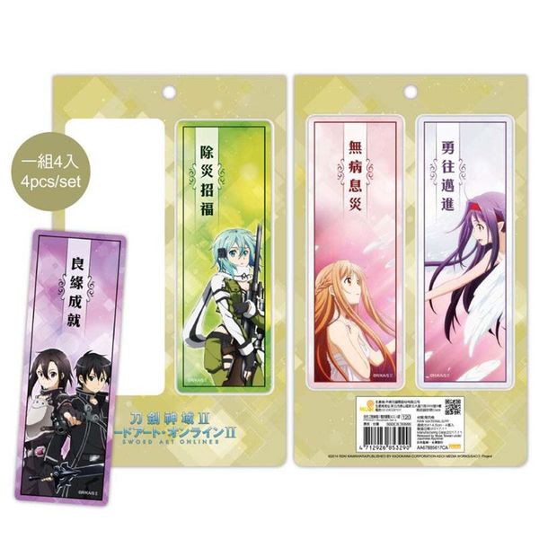 絕版 SWORD ART ONLINE Ⅱ 刀劍神域Ⅱ 正版 文具 書簽 套裝 籤詩 書籤 一套4張 木棉花 SAO 大集合 (A款) 【平行進口】