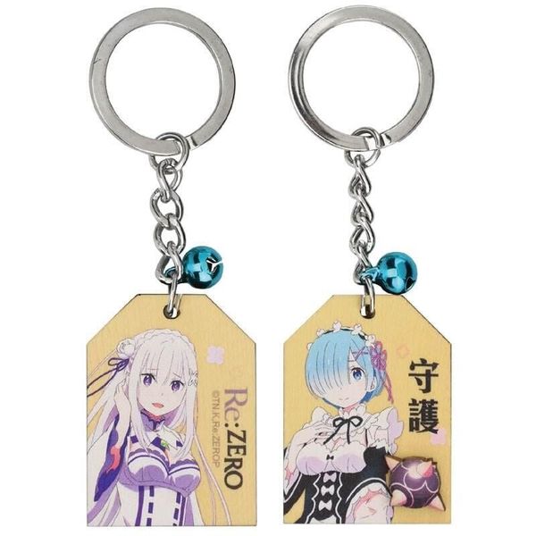 RE:ZERO 從零開始的異世界生活 正版 雙面 木牌 鎖匙扣 鑰匙鍊 掛飾 吊飾 掛件 木棉花 愛蜜莉亞+雷姆 (A款) 【平行進口】
