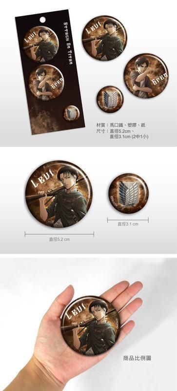 MUSE-進撃的巨人 正版 圓形 金屬 胸章 徽章 三個裝 胸針 心口針 扣針 背包 襟章 裝飾 木棉花 艾連 兵長 艾倫X里維 (A款) 【平行進口】