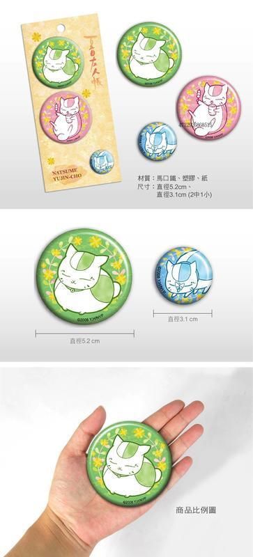 MUSE-夏目友人帳 正版 圓形 金屬 胸章 徽章 三個裝 胸針 心口針 扣針 背包 襟章 裝飾 木棉花 貓老師 貓咪老師 (A款) 【平行進口】