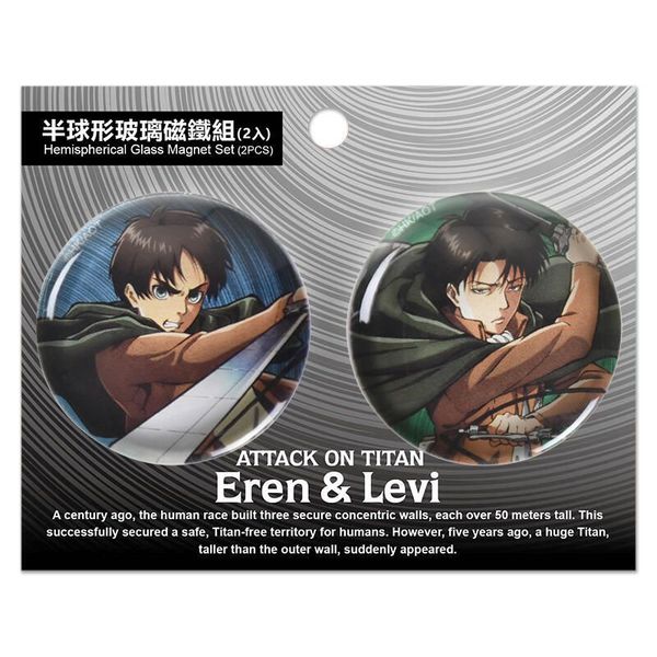 MUSE-進撃的巨人 正版 半球形 玻璃 磁石 雪櫃 攝石 家居 冰箱 磁鐵 裝飾 2個裝 木棉花 艾連 兵長 艾倫X里維 (A款) 【平行進口】