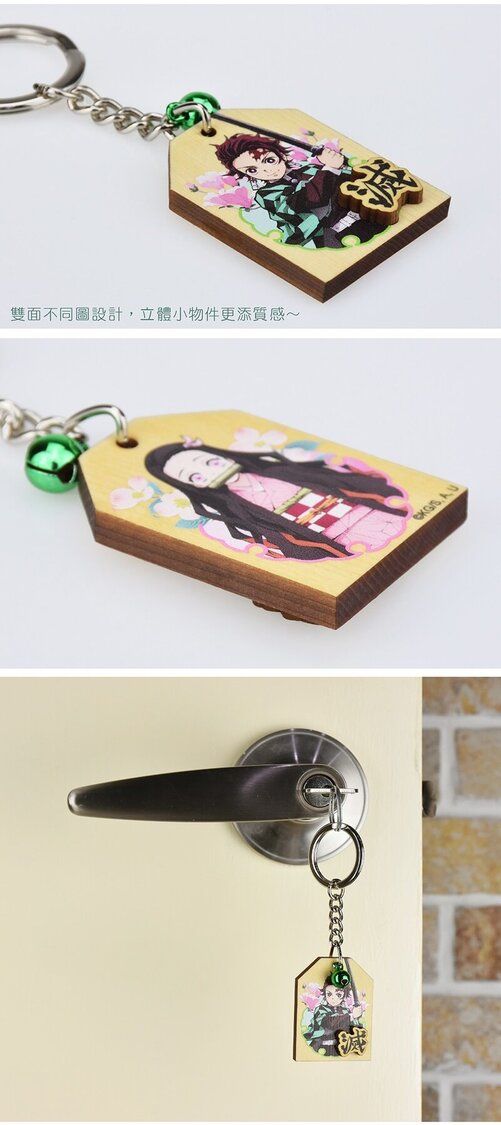 鬼滅之刃 鬼滅の刃 正版 雙面 木牌 鎖匙扣 鑰匙鍊 匙扣 掛飾 掛件 木棉花 (炭治郎X禰豆子) 【平行進口】