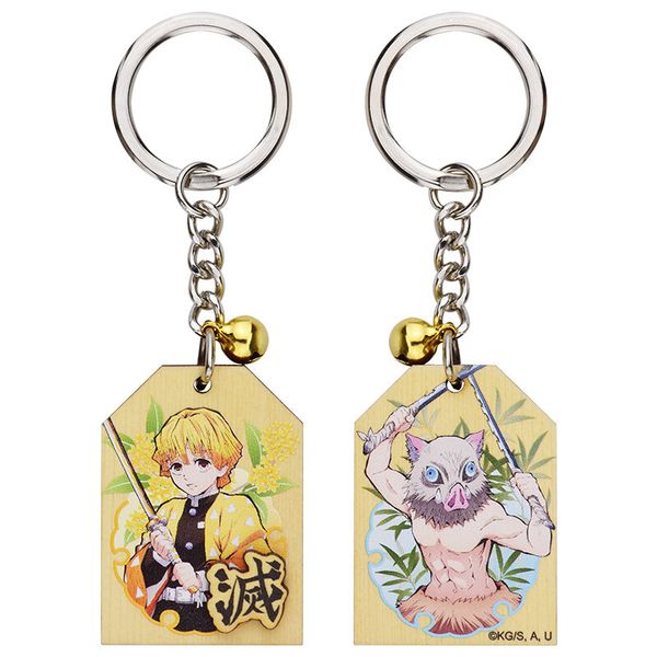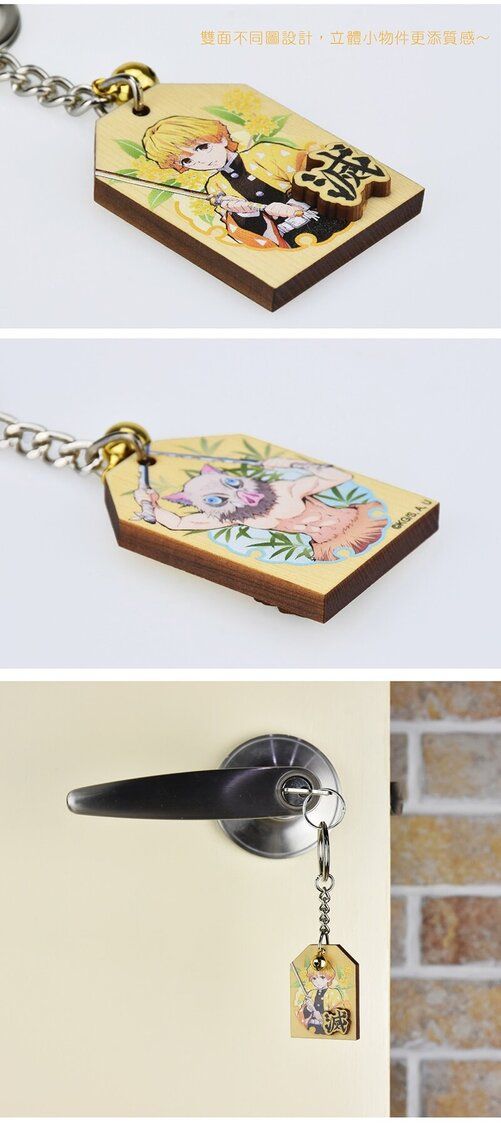 鬼滅之刃 鬼滅の刃 正版 雙面 木牌 鎖匙扣 鑰匙鍊 匙扣 掛飾 掛件 木棉花 (我妻善逸X嘴平伊之助) 【平行進口】