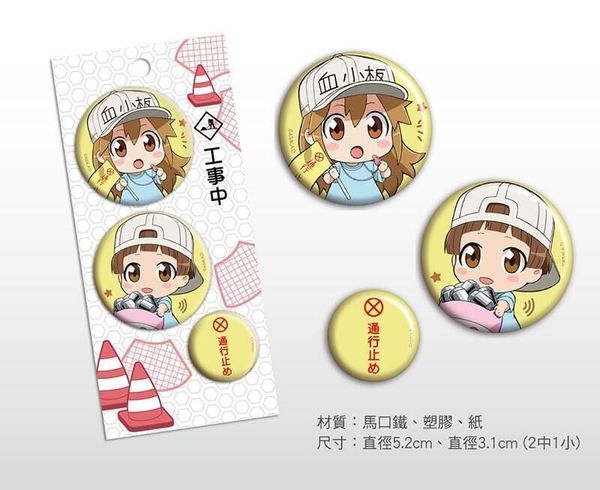MUSE-工作細胞 正版 圓形 金屬 胸章 徽章 三個裝 胸針 心口針 扣針 背包 襟章 裝飾 木棉花 血小板 (A款) 【平行進口】