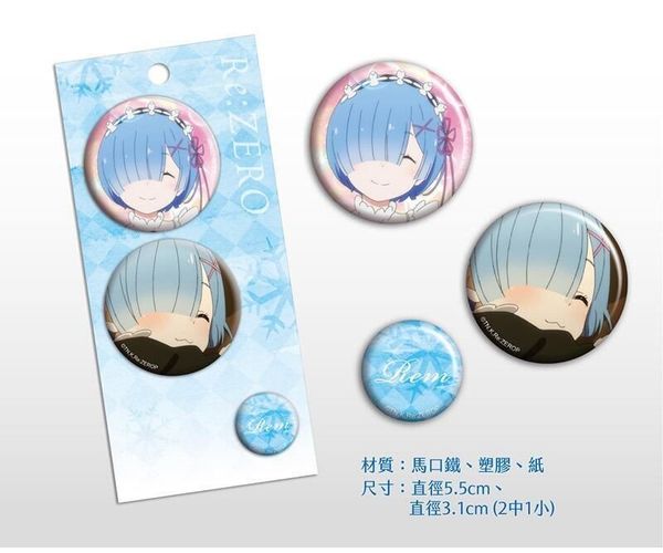 MUSE-RE:ZERO 從零開始的異世界生活 正版 圓形 金屬 胸章 徽章 三個裝 胸針 心口針 扣針 背包 襟章 裝飾 木棉花 雷姆 (E款) 【平行進口】