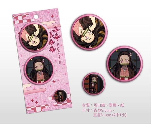 MUSE-鬼滅之刃 鬼滅の刃 正版 圓形 金屬 胸章 徽章 三個裝 胸針 心口針 扣針 背包 襟章 裝飾 木棉花 鬼殺隊 惡魔殺手 禰豆子 (F款) 【平行進口】