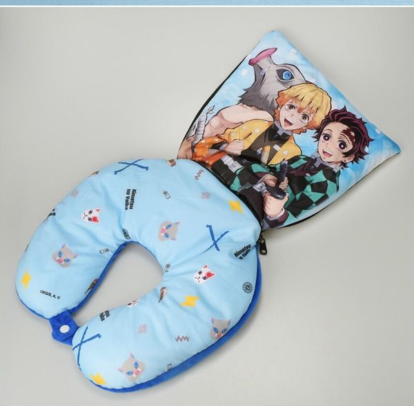 鬼滅之刃 鬼滅の刃 正版 旅行 兩用 抱枕 咕臣 頸枕 旅行枕 U型枕 午睡枕 木棉花 鬼殺隊 惡魔殺手 大集合 (B款) 【平行進口】