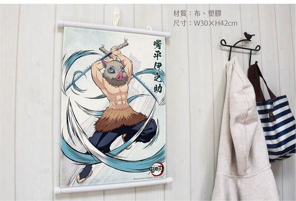MUSE-鬼滅之刃 鬼滅の刃 正版 劇場版 直款 A3 掛軸 家居 睡房 裝飾 掛牆 壁掛 海報 掛畫 木棉花 鬼殺隊 惡魔殺手 嘴平伊之助 (D款) 【平行進口】