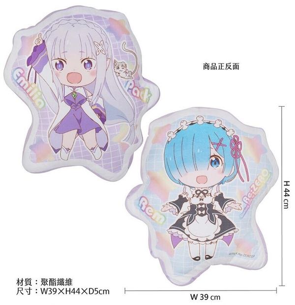 RE:ZERO 從零開始的異世界生活 正版 造型 雙面 抱枕 CUSHION 攬枕 木棉花 愛蜜莉亞+雷姆 (E款) 【平行進口】
