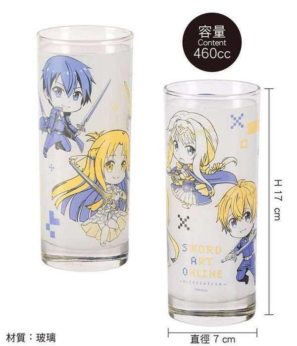 MUSE-SWORD ART ONLINE Ⅲ 刀劍神域Ⅲ 正版 家居 Q版 透明 長型 玻璃杯 玻璃 酒杯 水杯 460ML 木棉花 SAO 大集合 (A款) 【平行進口】