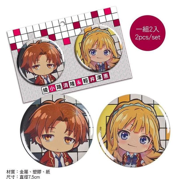 MUSE-歡迎來到實力至上主義的教室 正版 金屬 雷射 胸章 徽章 兩個裝 胸針 心口針 扣針 背包 襟章 裝飾 木棉花 實教 綾小路X輕井澤 (A款) 【平行進口】