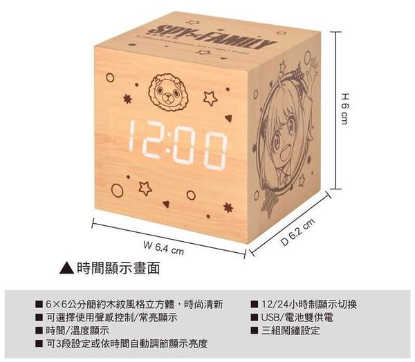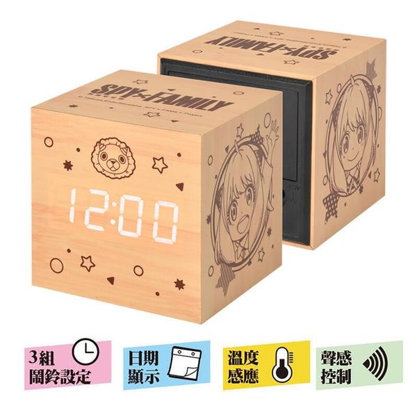 MUSE-SPY×FAMILY 間諜家家酒 正版 桌上 方形 LED 木紋鐘 USB 數字 鬧鐘 溫度感應 聲控 木棉花 間諜過家家 安妮亞 (A款) 【平行進口】