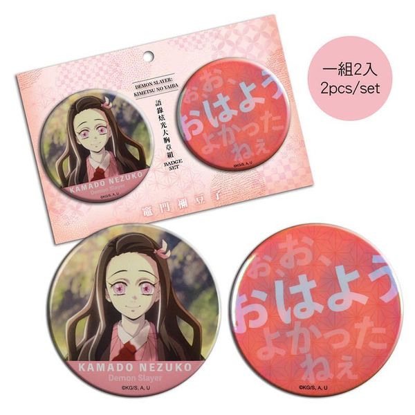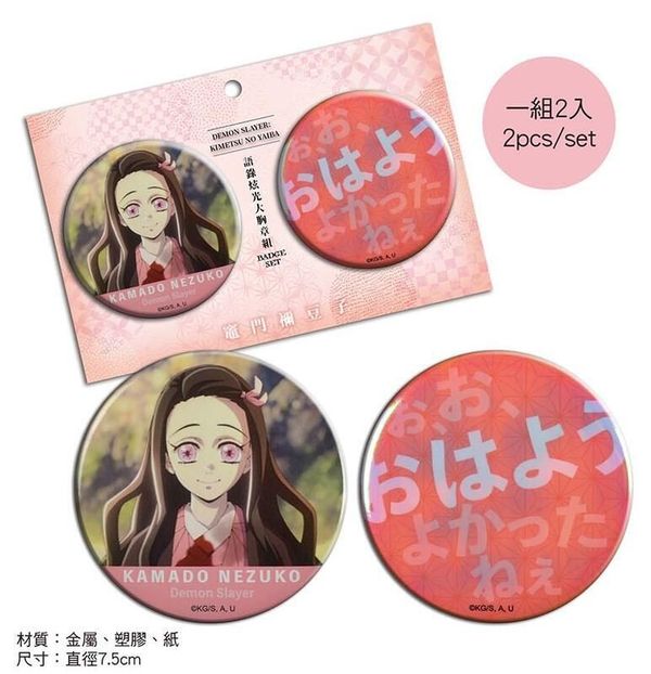 MUSE-鬼滅之刃 鬼滅の刃 正版 金屬 炫光 角色 語錄 胸章 徽章 兩個裝 胸針 心口針 扣針 背包 襟章 裝飾 木棉花 鬼殺隊 惡魔殺手 禰豆子 (A款) 【平行進口】