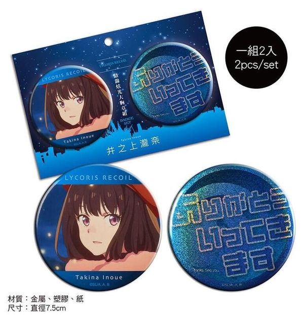 MUSE-莉可麗絲 正版 金屬 炫光 角色 語錄 胸章 徽章 兩個裝 胸針 心口針 扣針 背包 襟章 裝飾 木棉花 LYCORECO 瀧奈 (B款) 【平行進口】