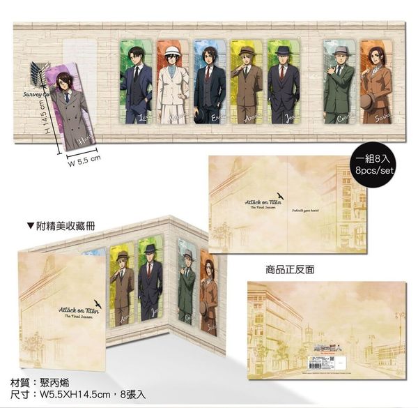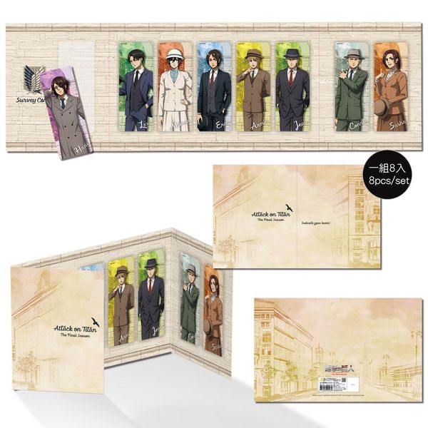 MUSE-進撃的巨人 正版 文具 書簽 套裝 銀箔 書籤 一套8張 木棉花 大集合 (A款)【平行進口】