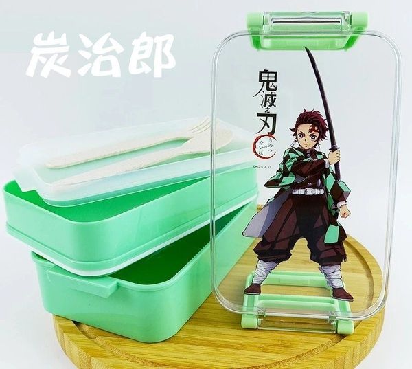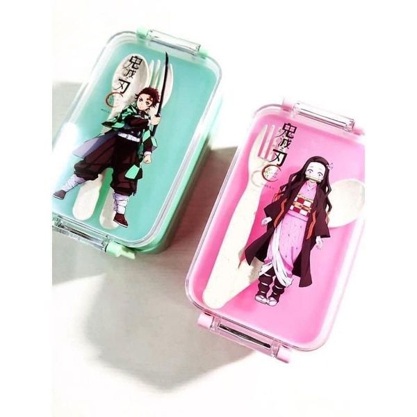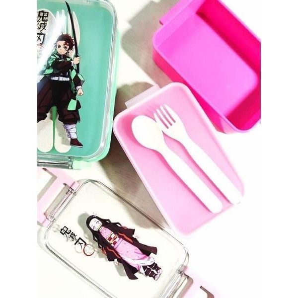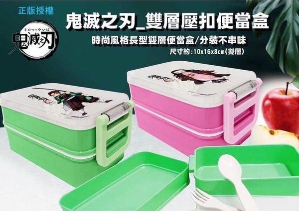 MUSE-鬼滅之刃 鬼滅の刃 正版 雙層 壓扣 飯盒 餐盒 食物盒 便當盒 連 餐具 叉 匙羹 勺子 木棉花 鬼殺隊 惡魔殺手 2022年款 (竈門炭治郎)【平行進口】