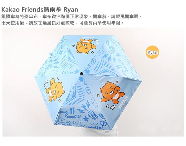 KAKAO FRIENDS 正版 雨傘 縮骨遮 防UV 摺疊傘 戶外 便攜 遮陽傘 RYAN APEACH 【平行進口】