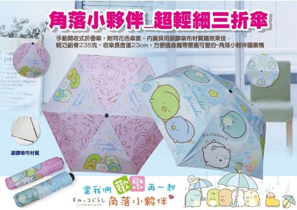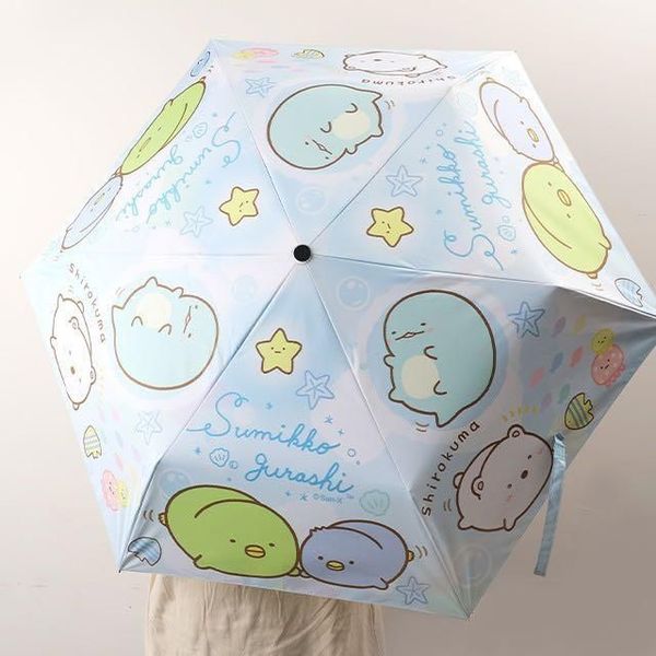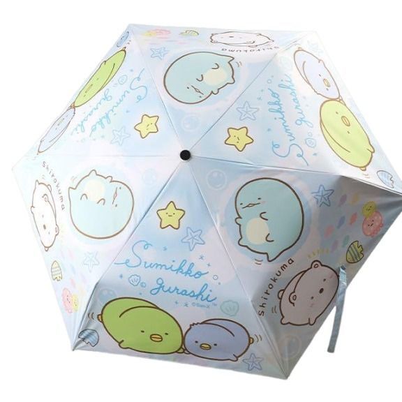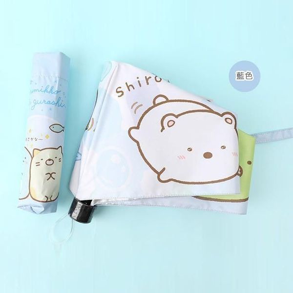 SAN-X-SUMIKKO GURASHI 角落生物 正版 雨傘 縮骨遮 短遮 摺疊傘 戶外 便攜 雨具 角落小夥伴 (粉藍) 【平行進口】