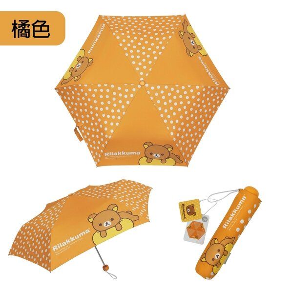 RILAKKUMA 鬆弛熊 正版 19吋 雨傘 縮骨遮 摺疊傘 折疊傘 銀膠布 便携 蛋捲傘 防曬 防紫外線 輕鬆熊 拉拉熊 2018年款 (橙色) 【平行進口】