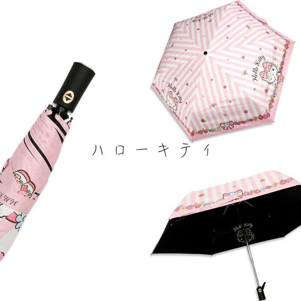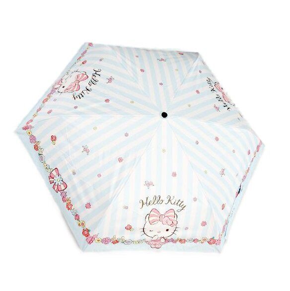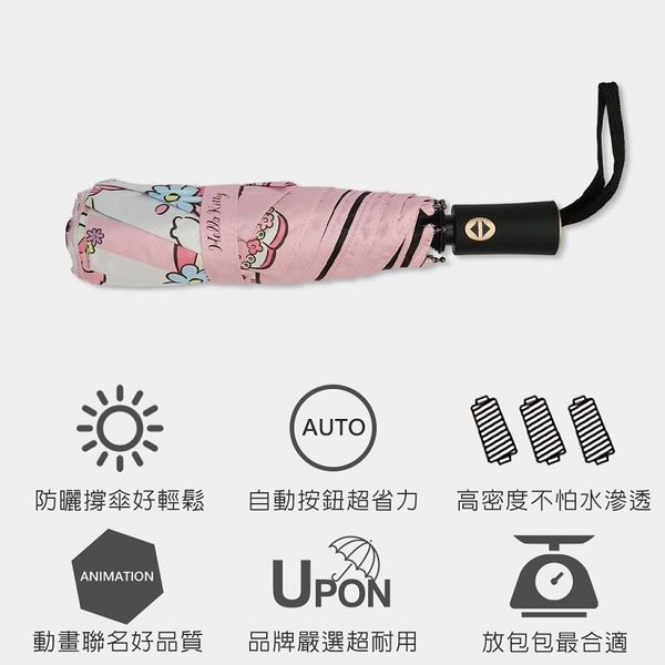HELLO KITTY 正版 花邊 直間 雨傘 自動 縮骨遮 摺疊傘 折疊傘 自動傘 自動開合傘 黑膠布 防曬 防UV 防紫外線光 凱蒂貓 2020年款 (水藍) 【平行進口】