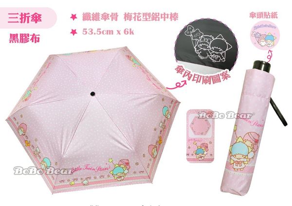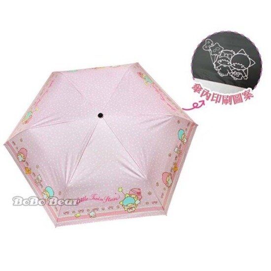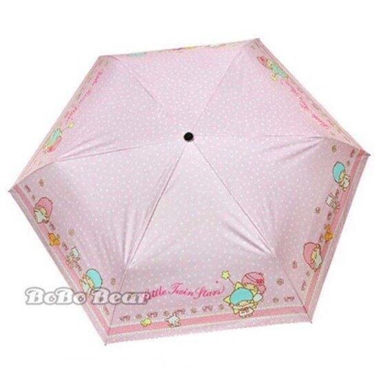LITTLE TWIN STARS 正版 雨傘 縮骨遮 摺疊傘 折疊傘 黑膠布 便携 三折傘 三摺遮 防曬 防紫外線 雙子星 KIKI LALA 雙星仙子 2020年款 (粉紅星星) 【平行進口】