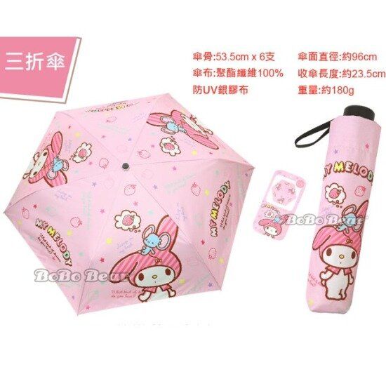 MY MELODY 正版 縮骨遮 摺疊傘 銀膠布 便携 超輕 三折傘 防曬 防紫外線 美樂蒂 (粉紅草莓) 【平行進口】