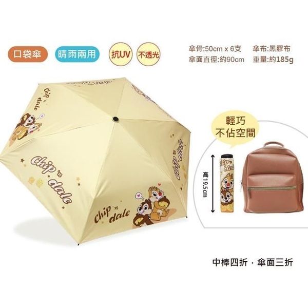 迪士尼-DISNEY CHIP N DALE 正版 防UV 雨傘 縮骨遮 短遮 摺疊傘 戶外 便攜 雨具 50CM 奇奇 蒂蒂 大鼻 鋼牙 【平行進口】