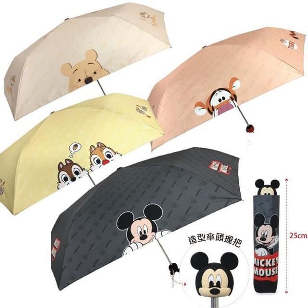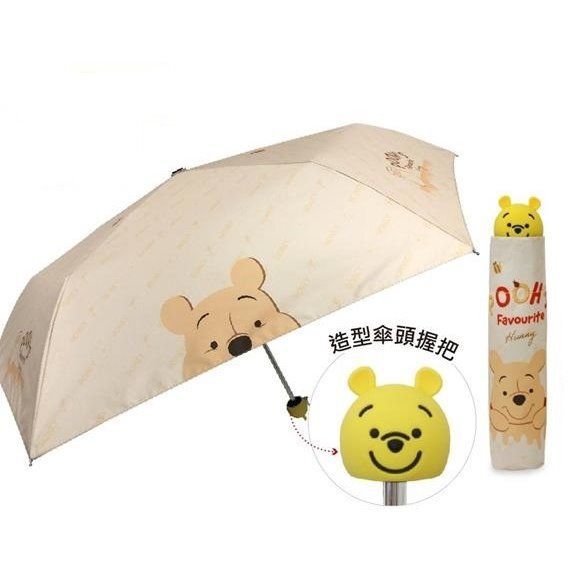迪士尼-DISNEY WINNIE THE POOH 正版 防UV 雨傘 縮骨遮 短遮 摺疊傘 戶外 便攜 雨具 小熊維尼 (造型手柄) 【平行進口】