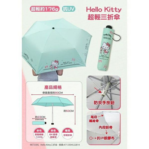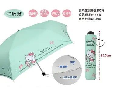 SANRIO-HELLO KITTY 正版 抗UV 雨傘 縮骨遮 短遮 摺疊傘 戶外 便攜 雨具 凱蒂貓 吉蒂貓 (綠小熊款) 【平行進口】