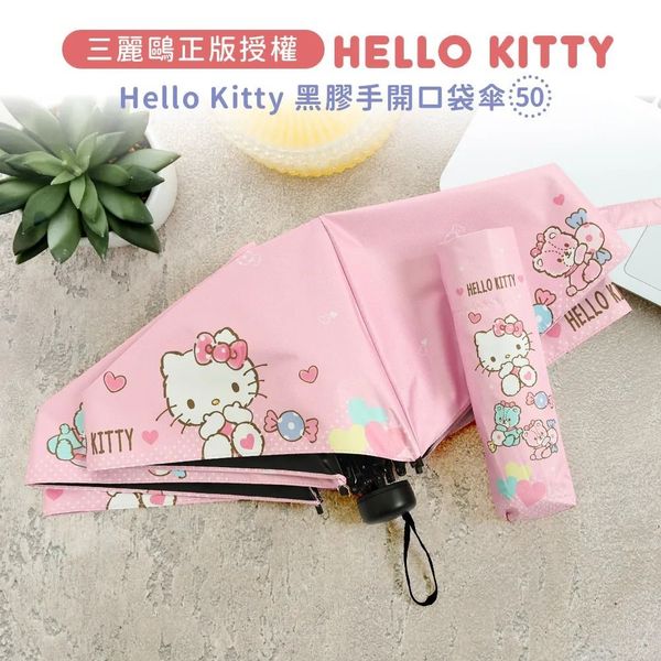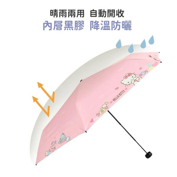 SANRIO-HELLO KITTY 正版 黑膠布 防UV 雨傘 縮骨遮 短遮 摺疊傘 戶外 便攜 雨具 50CM 凱蒂貓 吉蒂貓(糖果) 【平行進口】