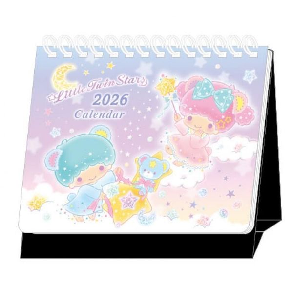 SANRIO-LITTLE TWIN STARS 正版 2026 迷你 桌上 線圈 座檯 月曆 桌曆 枱曆 家居 台灣假期 雙子星 KIKI LALA 雙星仙子【平行進口】