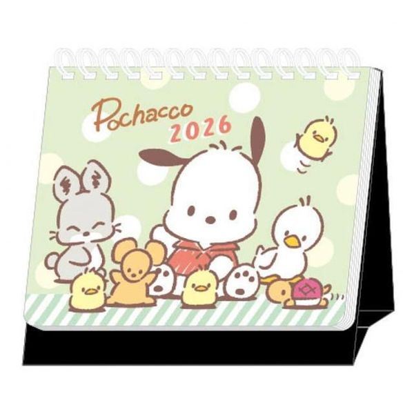SANRIO-POCHACCO PC狗 正版 2026 迷你 桌上 線圈 座檯 月曆 桌曆 枱曆 家居 台灣假期 帕恰狗【平行進口】