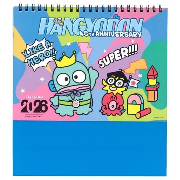 SANRIO-HANGYODON 水怪 正版 2026 A5 家居 桌上 線圈 座檯 月曆 桌曆 枱曆 台灣假期 海怪 人魚漢頓【平行進口】