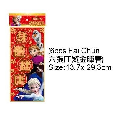 迪士尼-魔雪奇緣 港版 2019 豬年 賀年 直款 揮春 6件裝 29.3X13.7CM 新年 裝飾 ELSA ANNA 冰雪奇緣