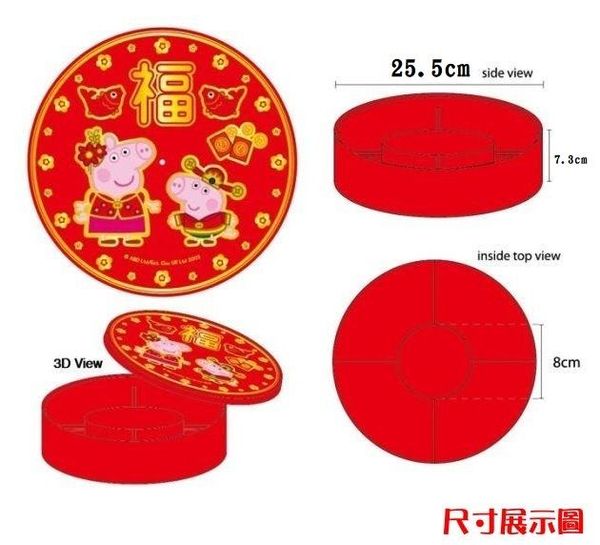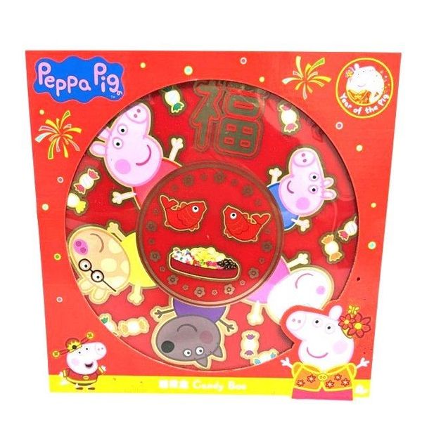 PEPPA PIG-PEPPA PIG 小豬佩奇 港版 特色 賀年 圓形 單層 糖果盒 全盒 新年 2019 豬年 粉紅豬小妹 (B款)