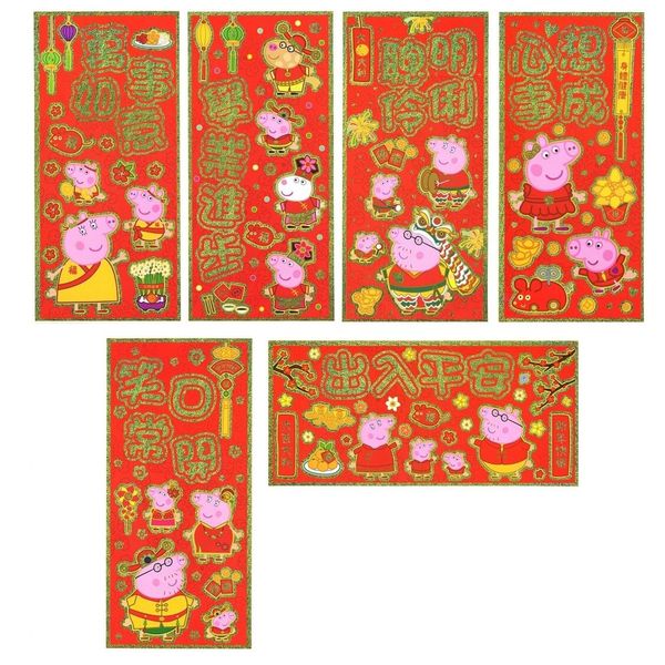 PEPPA PIG-小豬佩奇 港版 2019 豬年 賀年 直款 揮春 6件裝 29.3X13.7CM 新年 裝飾 粉紅豬小妹
