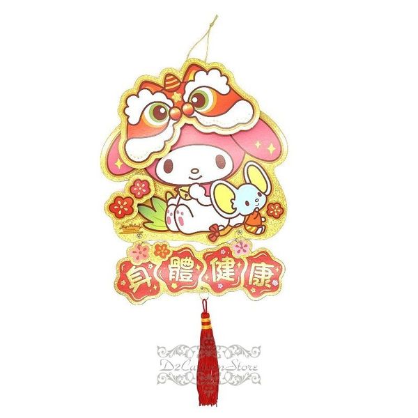 MY MELODY 港版 2023 兔年 賀年 金色 橫款 立體 揮春 吊飾 掛飾 掛件 21X22CM 新年 裝飾 美樂蒂 (身體健康)