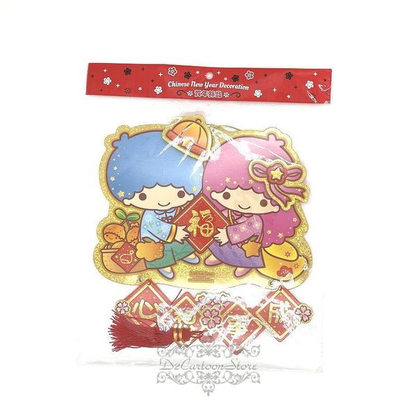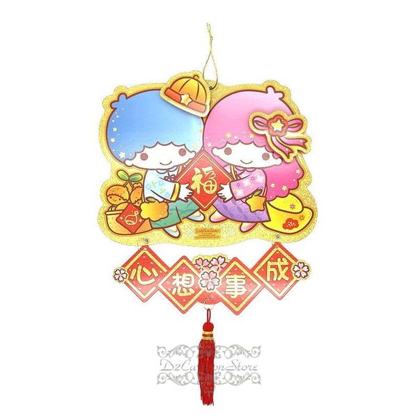 LITTLE TWIN STARS 港版 2023 兔年 賀年 金色 橫款 立體 揮春 吊飾 掛飾 掛件 21X22CM 新年 裝飾 雙子星 KIKI LALA 雙星仙子 (心想事成)